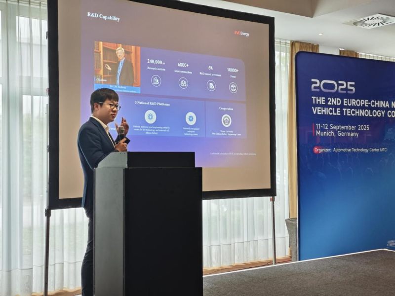 Am 11. und 12. September 2025 fand in München die zweite Europe-China New Energy Vehicle Technology Conference statt. Dr. Richard Zhang, Geschäftsführer von EVE Deutschland, war auf der Konferenz anwesend und hielt eine Grundsatzrede mit dem Titel „In Europa verwurzelt, Symbiose und Wachstum“. In der Rede wurden die Geschäftsstrategien von EVE Energy in Europa ebenso behandelt wie die Erfolge in den Bereichen technologische Innovation, lokale Produktion und nachhaltige Entwicklung.
