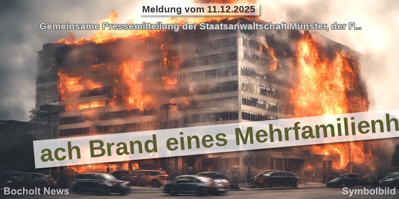 Gemeinsame Pressemitteilung der Staatsanwaltschaft Münster, der Polizei Borken und der Polizei MünsterNach dem Brand in einem Mehrfamilienhaus an der Langenbergstraße in Bocholt am frühen Donnerstagmorgen (11.12., gegen 6 Uhr) haben Polizeibeamte einen 19-jährigen Tatverdächtigen vorläufig festgenom... Mehr...