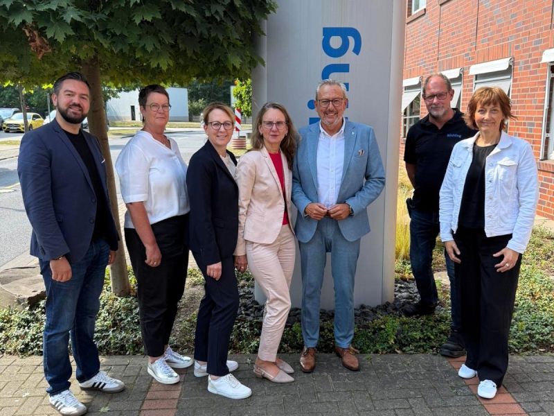 Bildunterschrift: Alexander Miller (TROWISTA), Gabi Ufer (Röchling Industrial), Regina Rosenstock (Rhein-Sieg-Kreis), Christine Lötters (ES Lötters), Helmut Hegemann (Röchling Industrial), Michael Wachsmann (Röchling Industrial) und Gabriele Paar (Rhein-Sieg-Kreis)