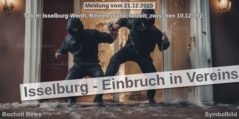 Tatort: Isselburg-Werth, Binnenstraße;Tatzeit: zwischen 10.12.2025 und 20.12.2025;In das Vereinsheim des Angelsportvereins Anholt an der Binnenstraße eingebrochen sind bislang unbekannte Täter in den zurückliegenden zehn Tagen. Die Einbrecher beschädigten den Maschendrahtzaun des Grundstücks und ver... Mehr...