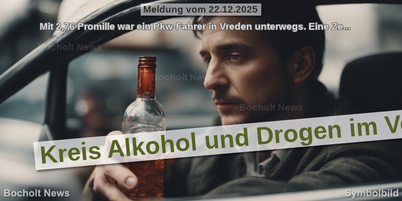Mit 2,76 Promille war ein Pkw-Fahrer in Vreden unterwegs. Eine Zeugin beobachtete, wie der Mann alkoholisiert ein Tankstellengelände verließ und informierte die Polizei.Die Beamten trafen den Fahrer an. Er war stark alkoholisiert und nicht im Besitz einer gültigen Fahrerlaubnis. Auf den Mann komme... Mehr...